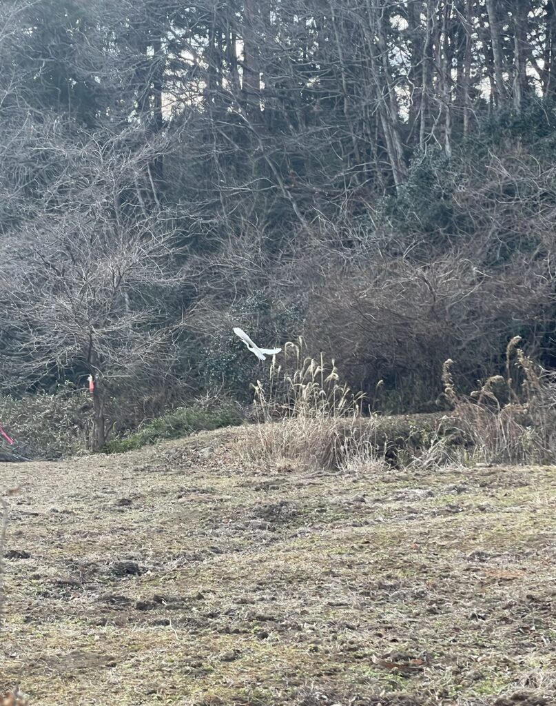 そして今年に入ったある日、白鷺が来てくれました☺️溜め池を覗いたりした後飛び立っていきました。